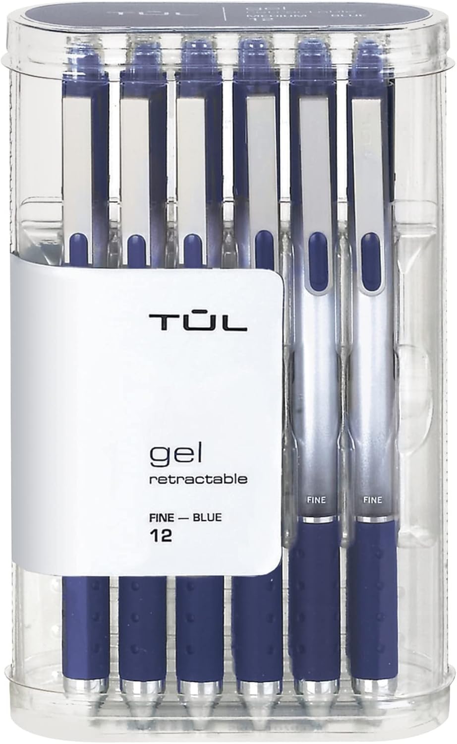 TUL Gel Pens, Retractable, Fine Point, 0.5 mm, Gray Barrel, Blue Ink, Pack Of 12